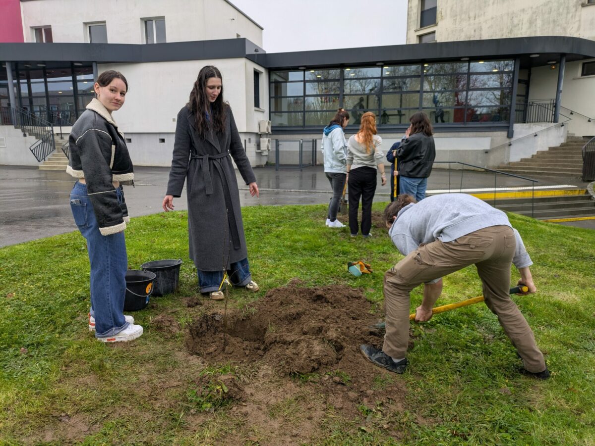 « Aujourd’hui, on met en place des arbres fruitiers greffés par la classe agro. L’idée, c’est de rendre l’IUT plus beau et de pouvoir cueillir des fruits plus tard dans le jardin », explique une étudiante engagée dans la commission développement durable.