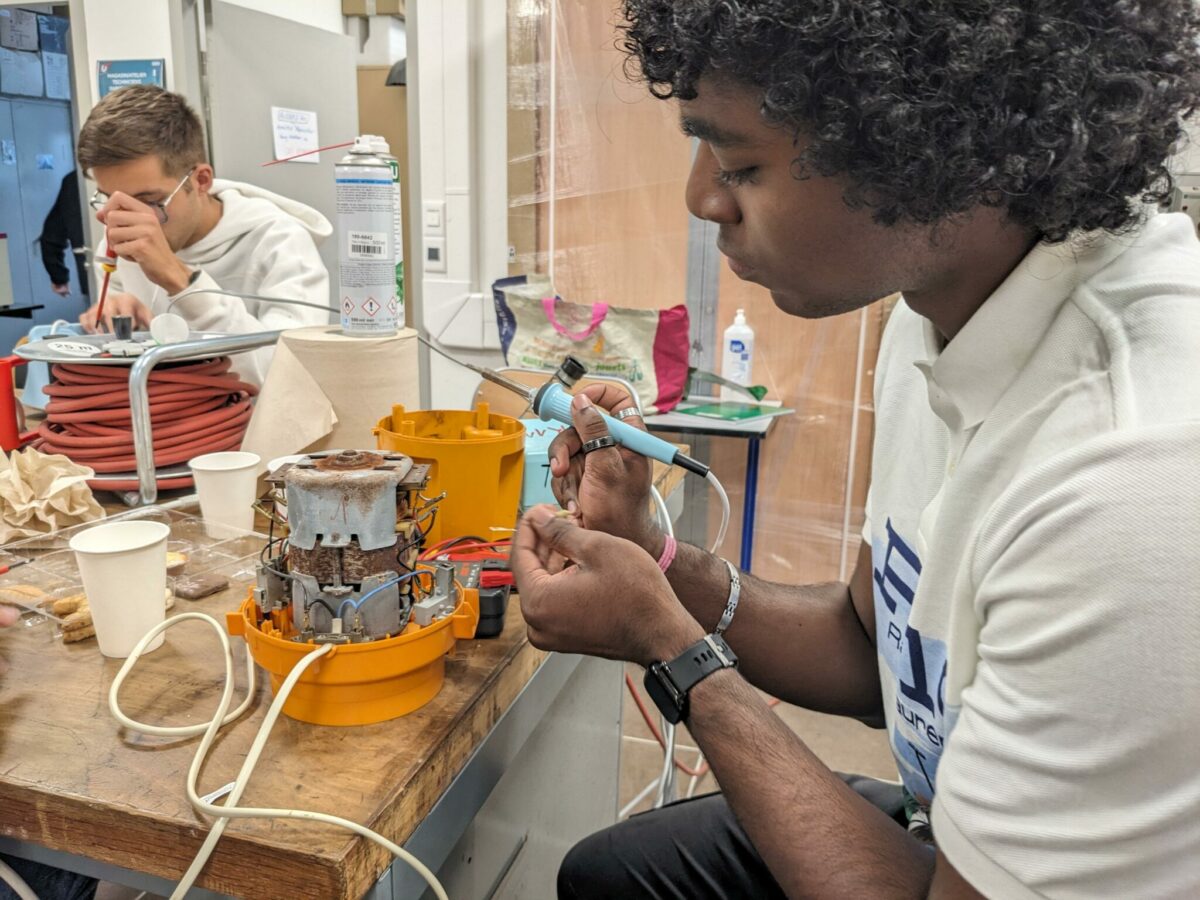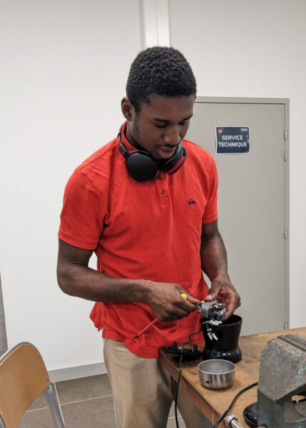 « Je répare tout le temps des trucs avec mon père, » s’exclame l’un des étudiants. « J’ai l’habitude ! » Un autre habitué nous fait part de son expérience : « Je fais partie d’un FABLAB depuis 6 ans, j’ai commencé enfant et maintenant, je suis animateur. Cela m’intéresse beaucoup. » Un troisième jeune confirme l’enthousiasme qui les anime : « J’aime bien réparer. Cela me permet d’apprendre et, surtout, de travailler sur de vrais équipements. Et puis, c’est très valorisant quand ça marche ! »