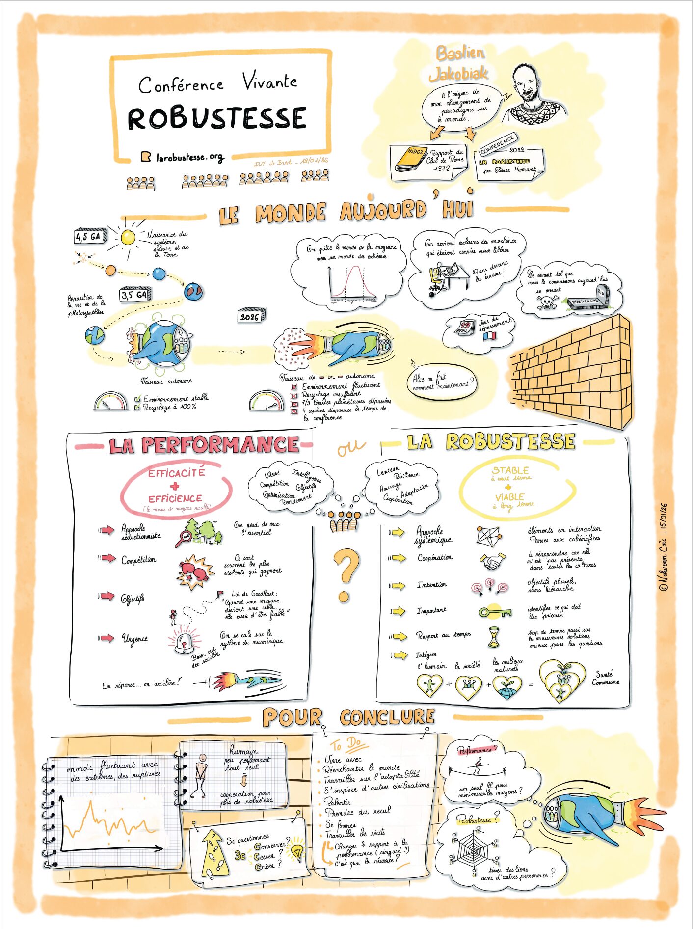 Pour illustrer cette conférence, nous vous invitons à explorer l’illustration réalisée par Nolwenn Coïc qui résume le déroulé de la conférence.