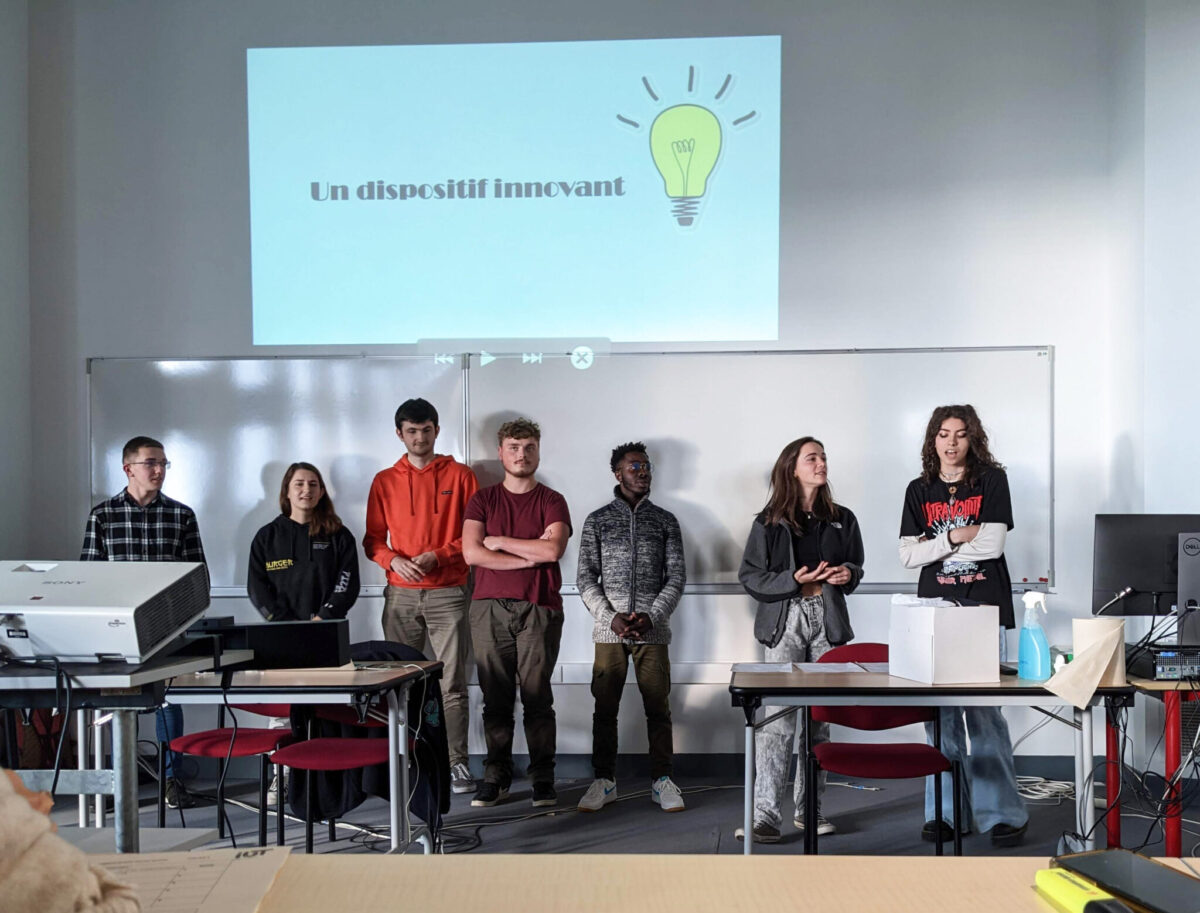 L’exercice consistait à se projeter complètement dans le rôle de créateur d’entreprise : imaginer l’innovation et identifier les métiers, les compétences et les ressources nécessaires pour la réaliser. Lors de la présentation des projets, en fin de journée en amphithéâtre, à l’image d’une start-up devant des investisseurs, les étudiants devaient pitcher leur idée en quelques minutes, présenter un rétroplanning et l’équipe qui réaliserait le projet.
