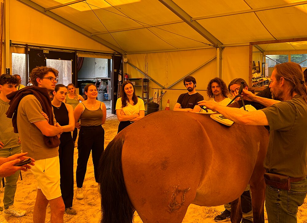 Enfin, est arrivé l’aboutissement de plusieurs mois de travail : la soutenance finale de leur projet sur le site de la compagnie Equestrio. Après avoir assisté à « La légende des chevaliers », l’un des spectacles de la compagnie, nos étudiants ont visité les coulisses des installations et fièrement présenté leurs arçons devant des professionnels du spectacle équestre.