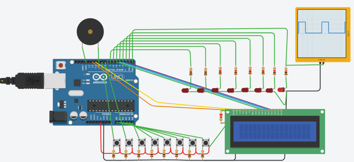 En première année du DUT GEII, en Travaux pratiques (TP) et Travaux dirigés (TD) d’informatique l’exercice consistait à travailler sur des cartes électroniques. Celles-ci ne peuvent pas être utilisées car elles sont à l’IUT. Ces cartes étaient composées d’un arduino ATMEGA avec un micro-contrôleur (équivalent d’un microprocesseur+mémoire+périphériques) ainsi que des périphériques. Il a donc fallu réfléchir à transposer l’exercice en simulation. L’objectif est de travailler sur les entrées/sorties, et dans ce cas lire les boutons poussoirs pour modifier les séquences d’animations sur des Leds.