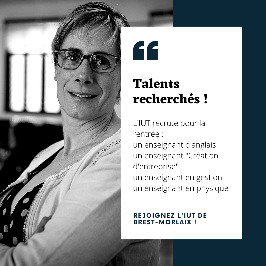 L’IUT de Brest-Morlaix recrute pour la rentrée ! Candidatures à transmettre avant le 2 juillet 2020.